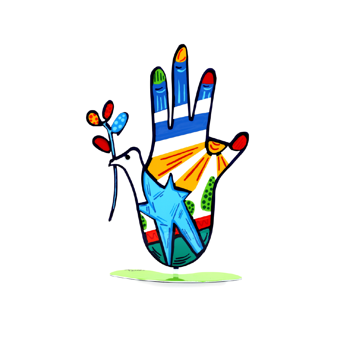 This powerful creation presents a Hamsa centered around a dove – a universal symbol of peace – holding a colorful branch and a renewed sense of hope. The Hamsa itself reflects the word “peace” not only between nations, but also inner peace – with ourselves, with those around us, and with nature as a whole.