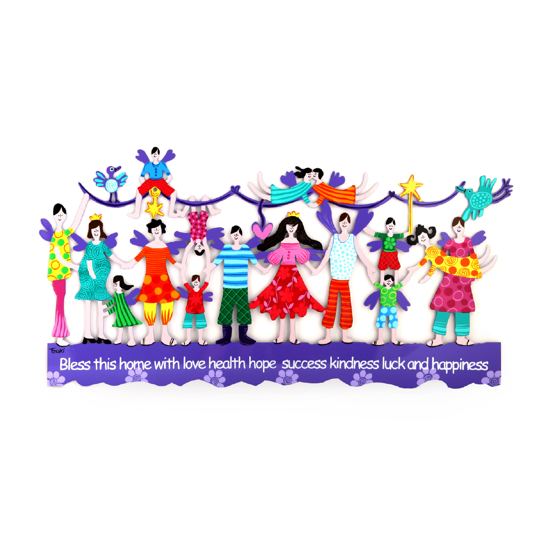 One image – a world of meaning. A colorful dream of a whole family, whole in heart and soul. All together, with joy in their eyes, hands reaching out, and little acts of love. The connections between the figures are not just lines – they are bonds, touch, closeness, and a promise. The home is blessed through these moments: of family friendship, hope, and endless laughter. When hands touch – hearts remain connected.